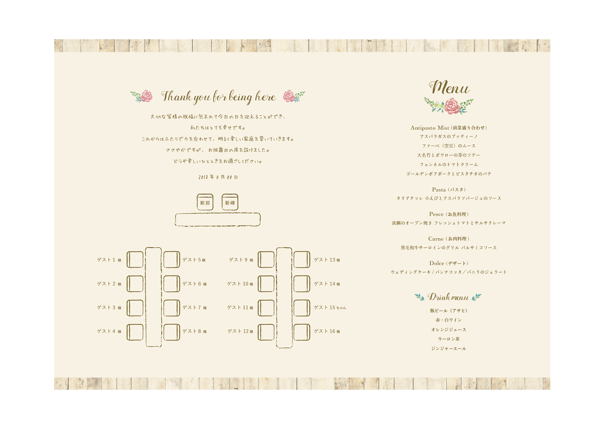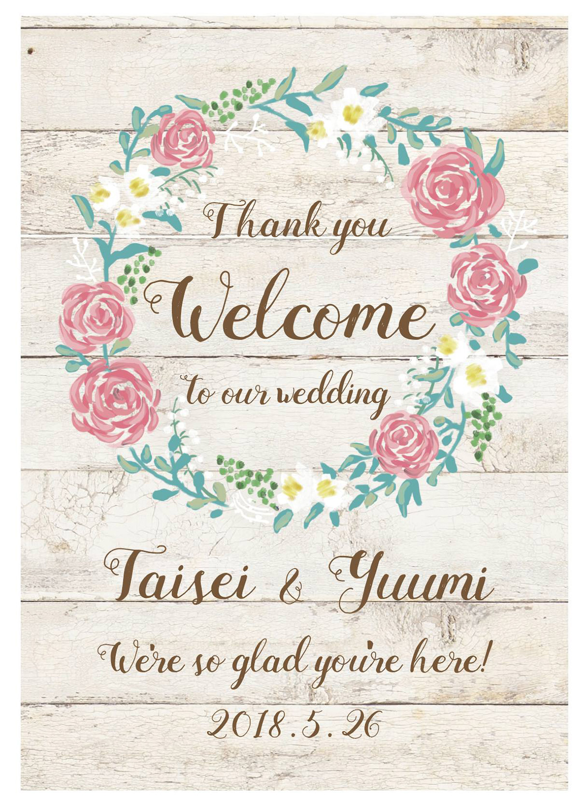ウェディングパーティーのウェルカムボードと席次表デザイン